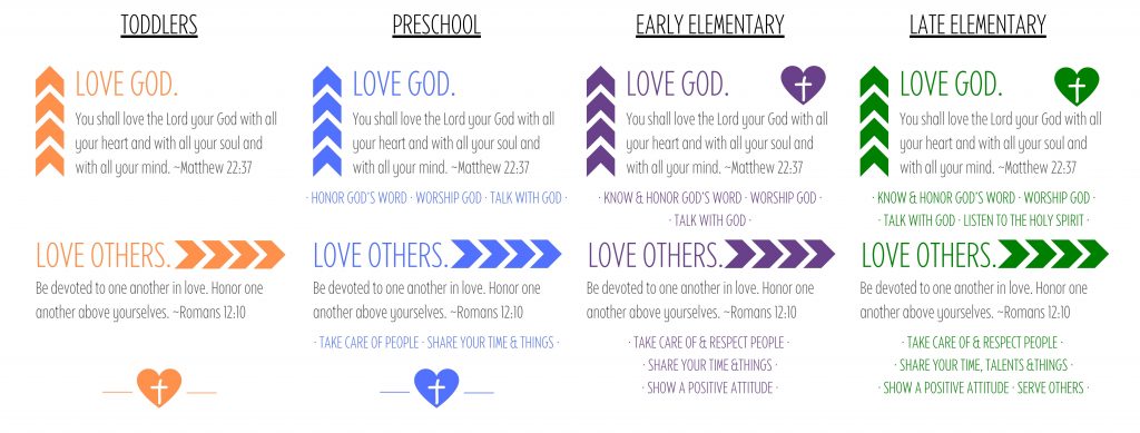 PCC’s early childhood ministry invites your child to know God better through regularly hearing his Word and by experiencing demonstrations of his love and guidance from our caring volunteers. By weaving our ministry tenants of Love God. Love others. into every interaction and lesson, your child will grow in wisdom and knowledge of God as he sees these commandments played out each week. We are excited for the opportunity to walk alongside your child on his early faith journey!